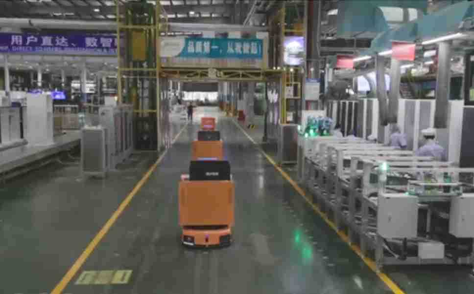 为车载冰箱物流配送打造的智能解决方案,,包含产中物流通过潜伏举升AMR搬运至线边,,,产后成品物流智能仓储,,,流程包含产中物流智能齐套入库,,,线边安灯叫料AMR智能配送至线边,,,成品入库、、、、出库,,,,通过无人堆高车机器人,,智能仓储管理替代人工作业管理,,实现更高存储、、更高效率、、、、更具柔性化的解决方案。。。